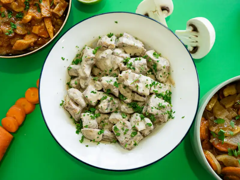 Bestellen Sie Ihre Lieblingsgerichte in Familienportionen (3 bis 4 Portionen) und kombinieren Sie sie zu Hause zu Ihrem idealen Gericht.